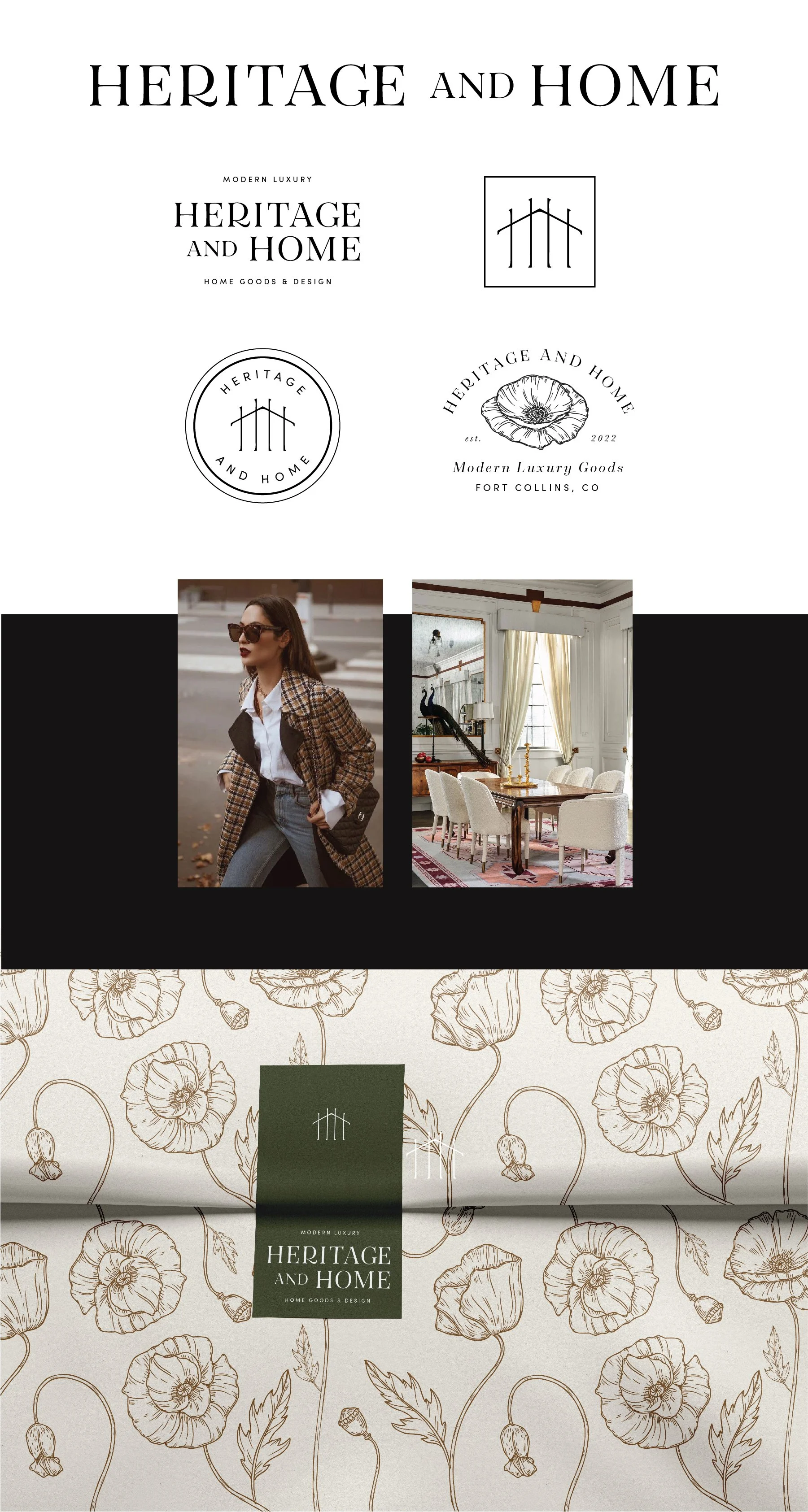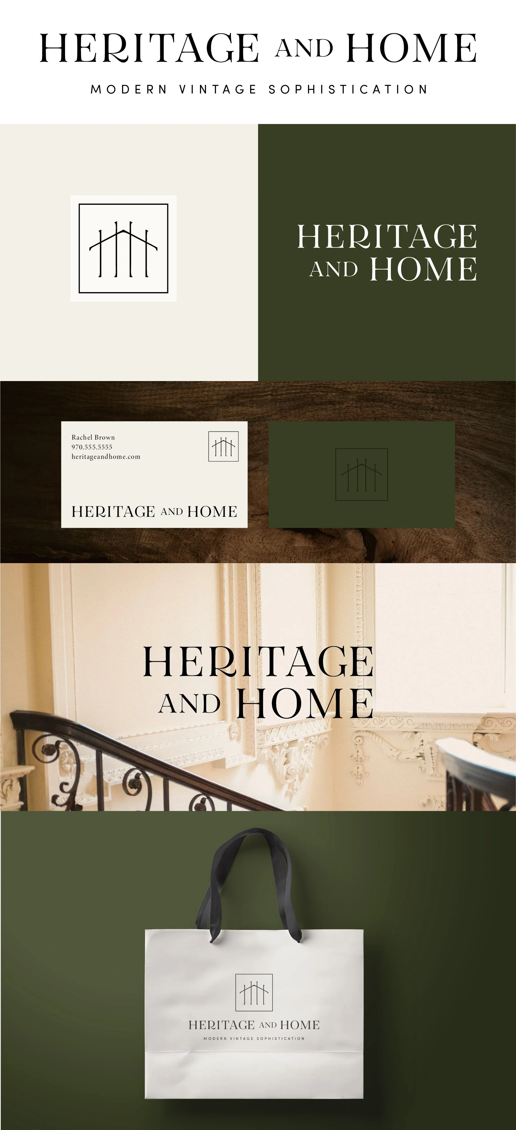 Heritage & Home will specialize in vintage-inspired luxury home decor and design. My main goal within all three concepts was to really harness a sophisticated, classic, elegant, luxury style while still allowing for an inviting vibe. One of the ways this brand evolved was to show more of the “luxury” side at the forefront and include some of the more “rough around the edges” elements in the details. Another focus was to ensure you will have a lot of different compositions to work with and to show how these elements will come together in a storefront setting.