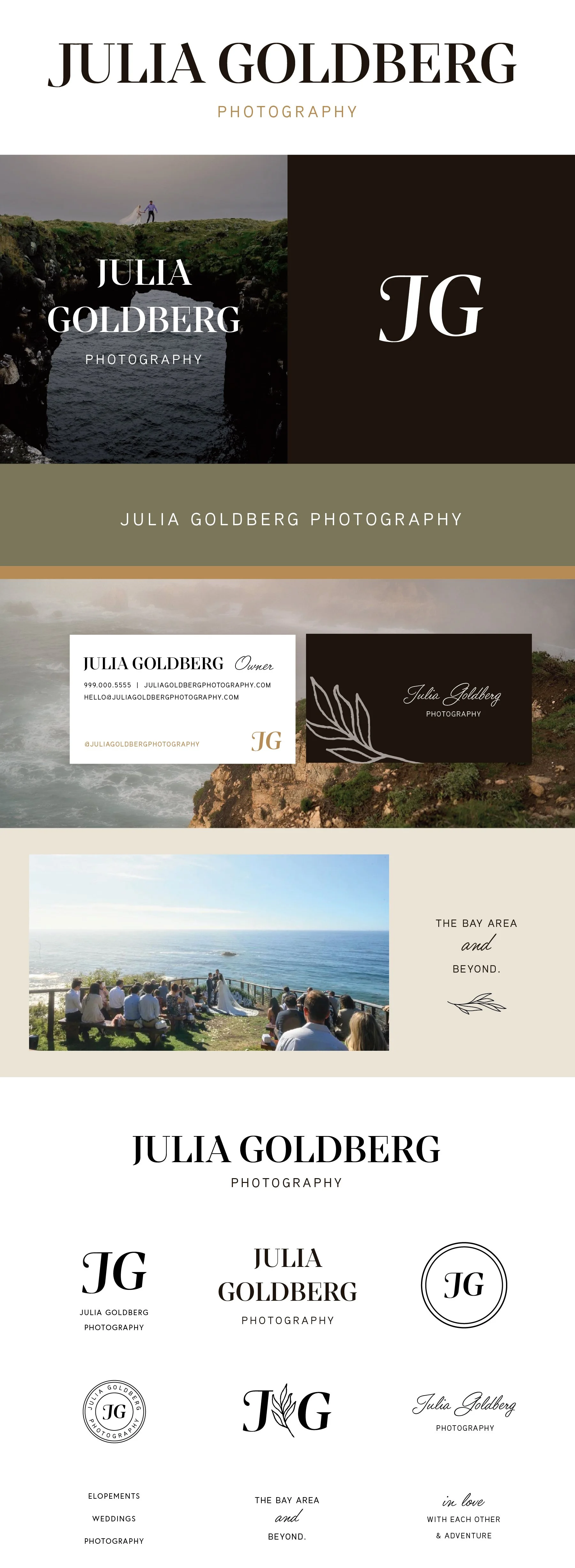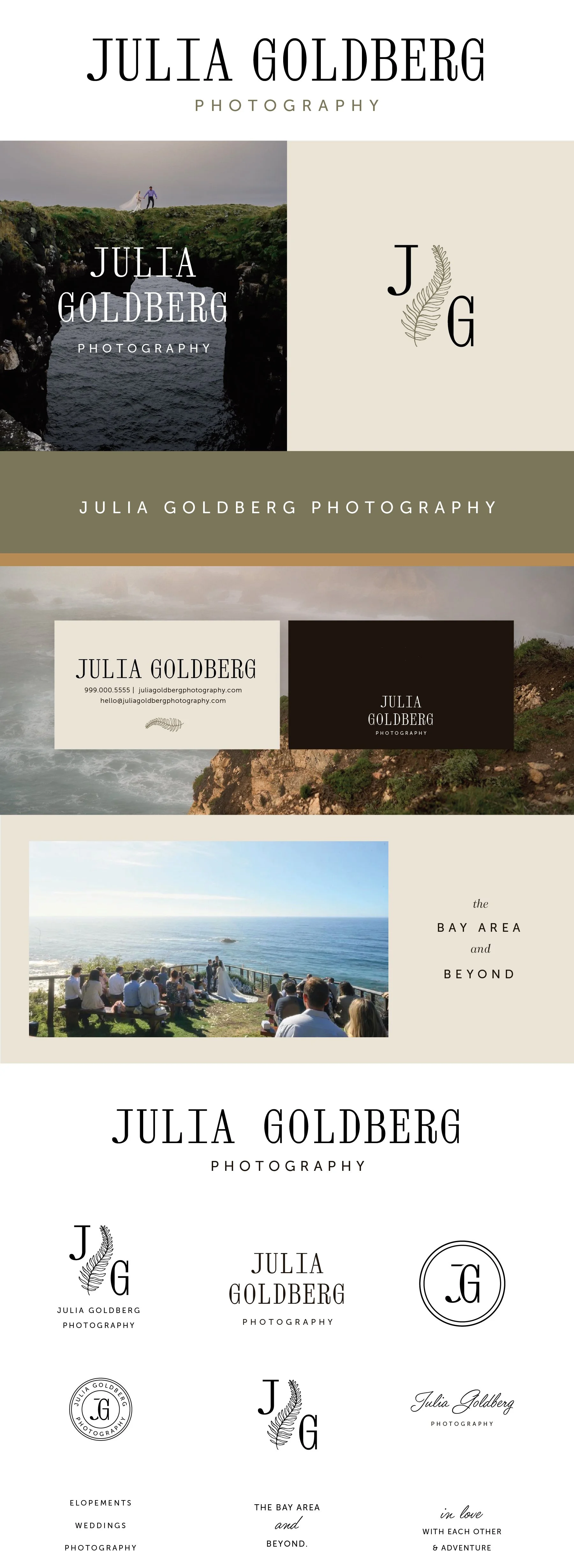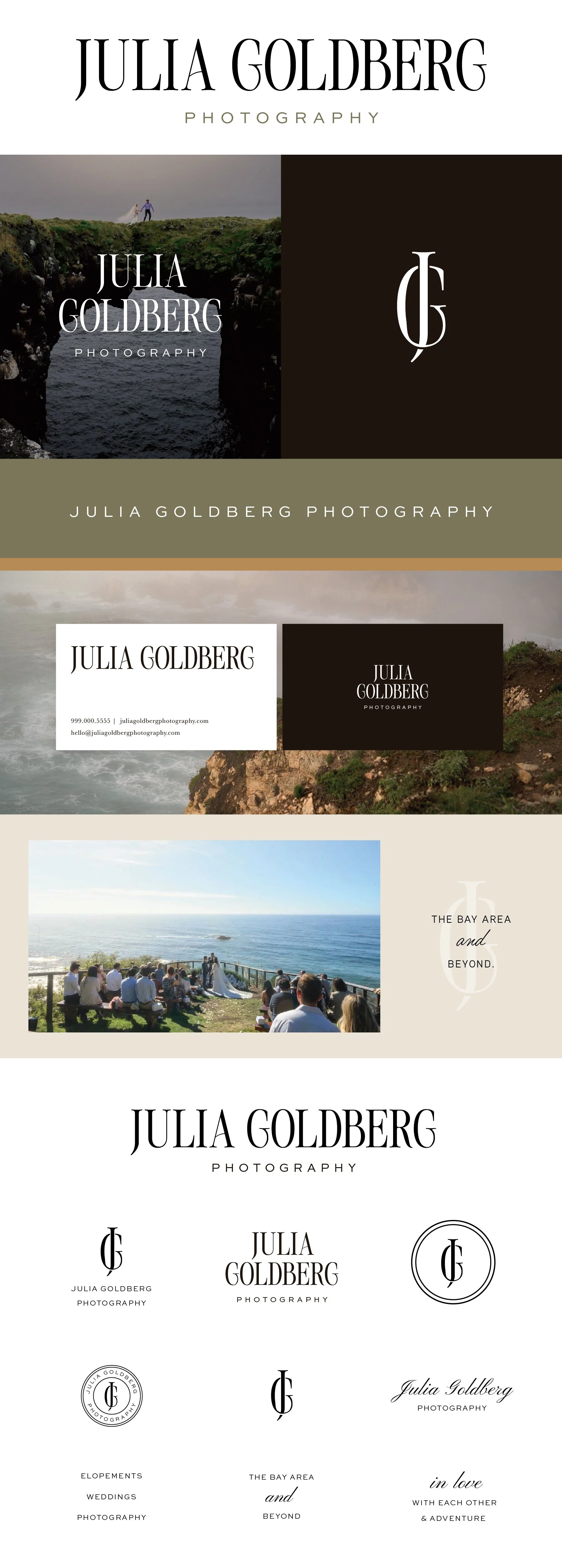 Julia Goldberg Photography is an adventure wedding and elopement photographer based in San Francisco, California. Her rebrand was prompted by a goal to have her logo and website match a higher caliber and pricepoint of her clientele.