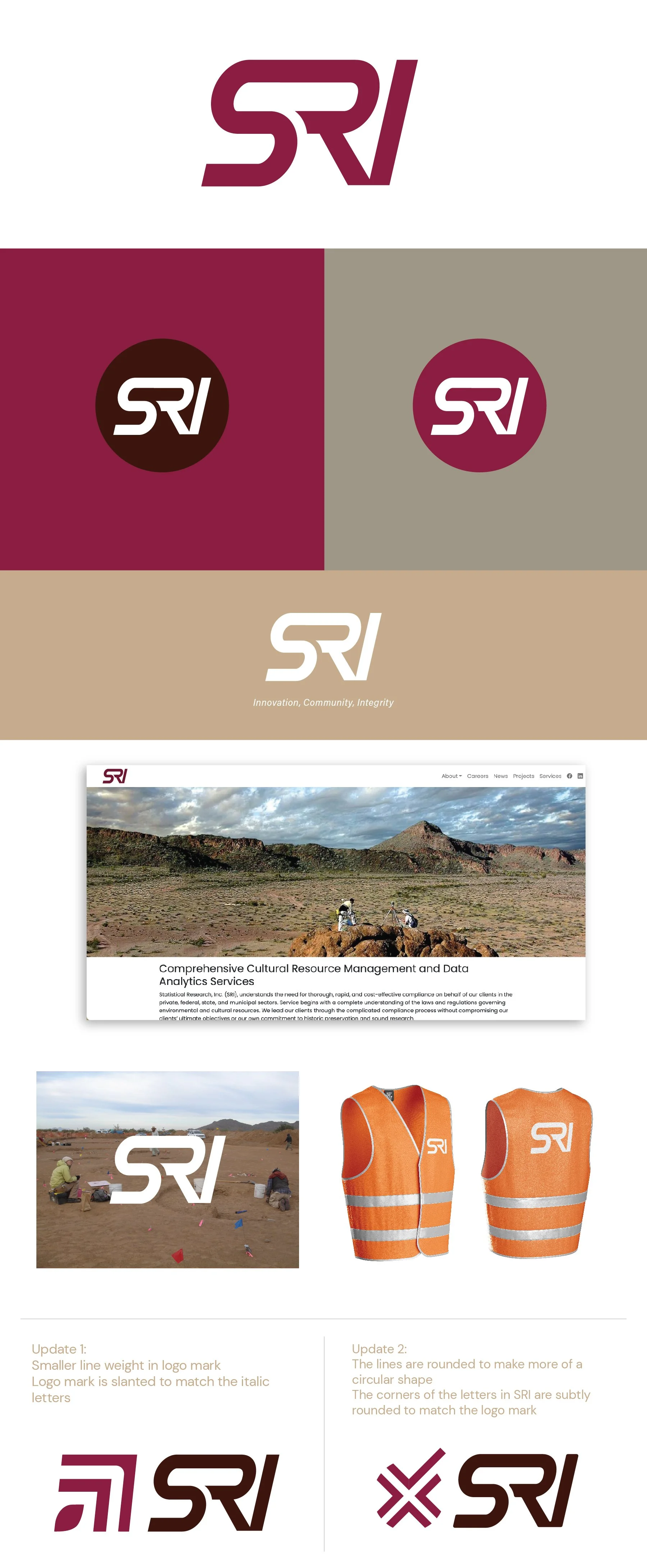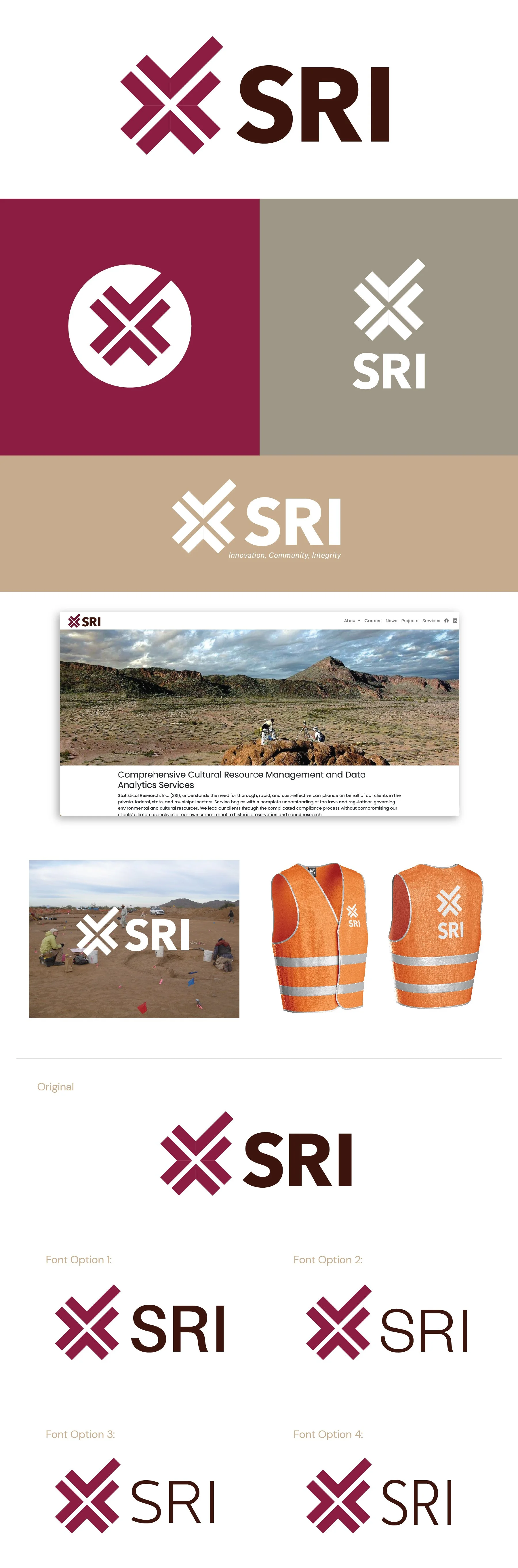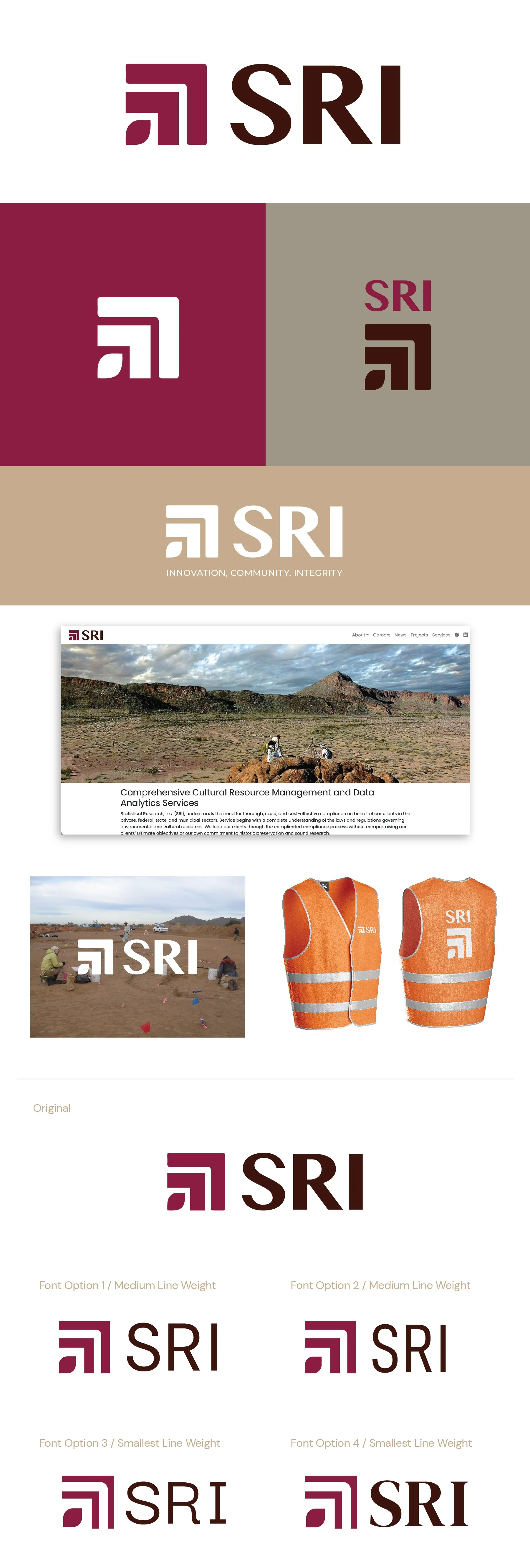 This concept has several elements that can be loosely interpreted to describe a lot of what SRI does. The smallest shape is shaped like a leaf, so it ties in with the natural aspect of what you do. The next two right-angle shapes can function to show growth, building blocks, data, and structures. This option is modern enough to be attractive to new employees but is timeless enough to appeal to both the public and private sectors that you work with.